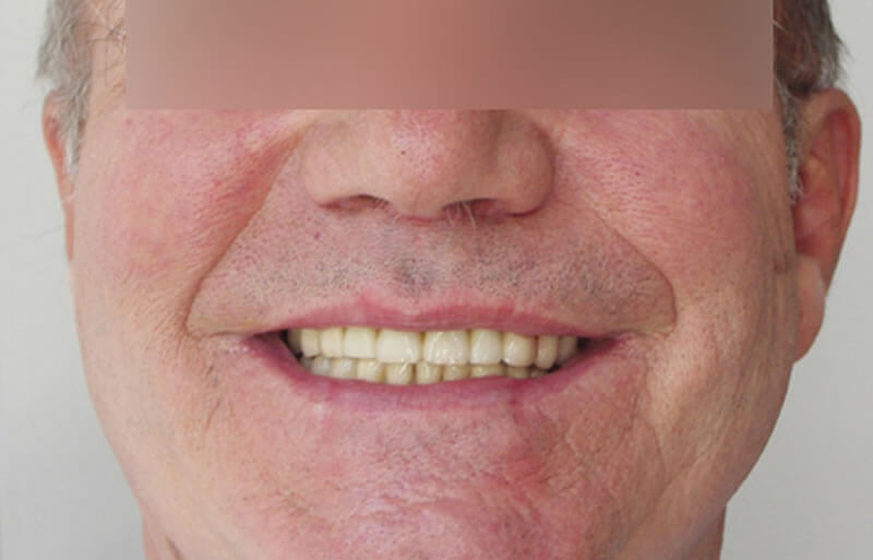 La pose de deux prothèses dentaires complètes céramiques implanto-portées, reconstruit le sourire et le visage.